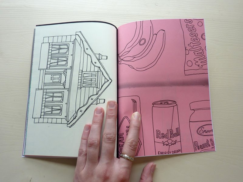 I spent my Saturday night playing with the photocopier, paper trimmer and double sided tape.I've made this little book. It's kind of like a mini illustration portfolio. I guess I consider drawing as a hobby more than anything. And although illustration has crept in to a few of my design projects, my main portfolio doesn't show much of it.